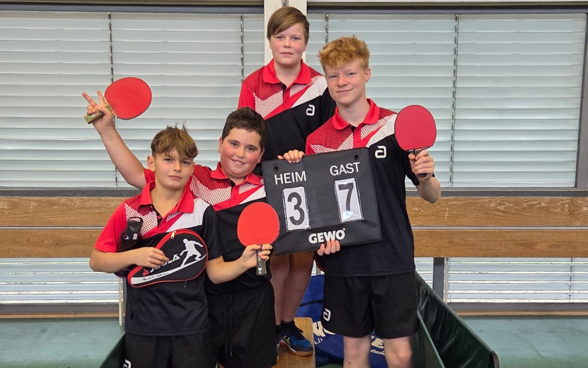 Die Jungen 14 der TTG (Julen, Hendrick, Leon und Louis ) konnten an ihrem Doppelspieltag zwei klare Erfolge einfahren.